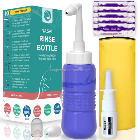 Factory Price 300ml Bottle with Nasal Salt Kit Sinus Rinse Neti Pot Nose Wash Irrigation Sinus Cleaner Flush Nasal Syringe